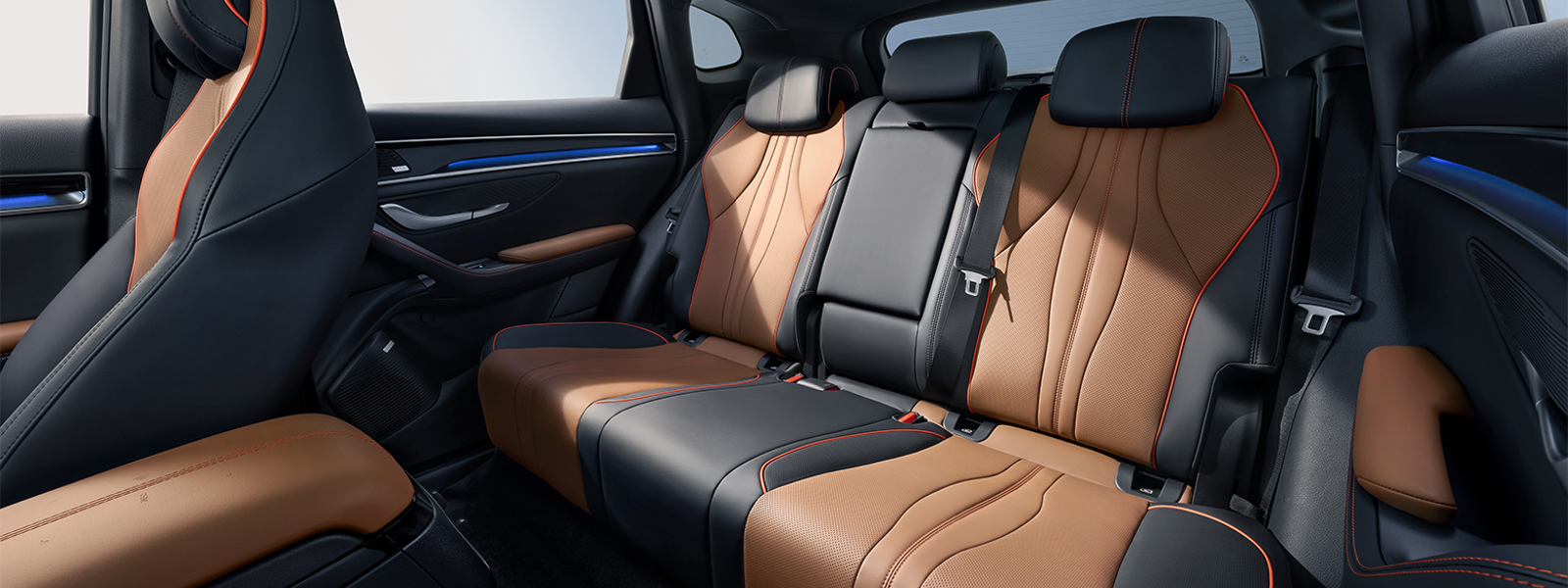 Daudzfunkcionāli sēdekļi:Priekšējie sēdekļi ir aprīkoti ar ventilācijas un apsildes funkcijām, elektrisko regulāciju un atmiņas iestatījumiem, kas ļauj viegli atrast savu ideālo sēdpozīciju.